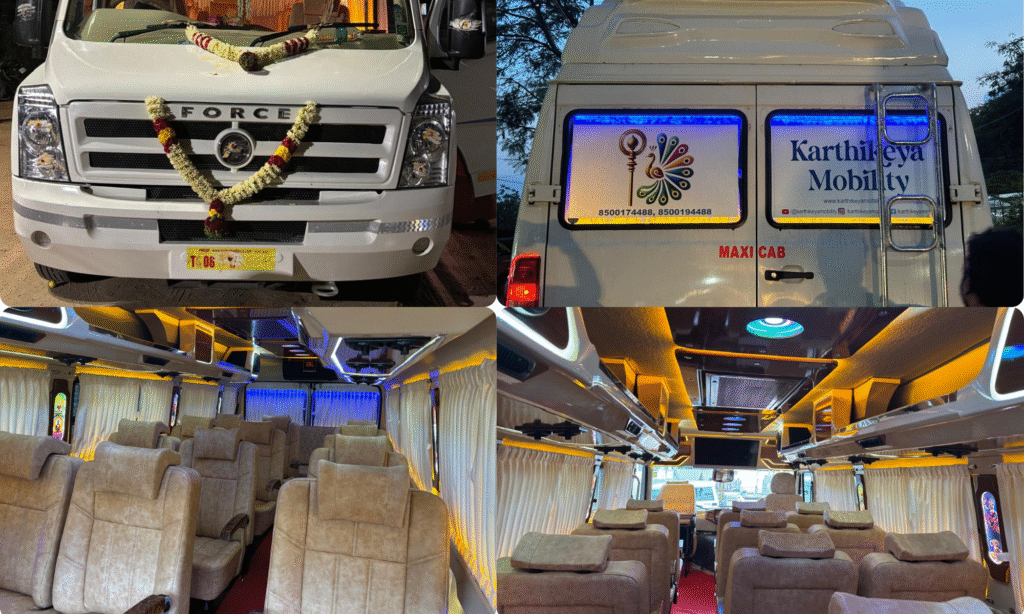 At Karthikeya Mobility, our vision is to redefine the way people experience road travel. We believe every journey should be more than just reaching a destination—it should be a memorable experience filled with comfort, safety, and togetherness. By offering luxury tempo traveller rentals in Hyderabad, we aim to set new standards in group travel, making family trips, corporate tours, and pilgrimages more enjoyable and stress-free.
